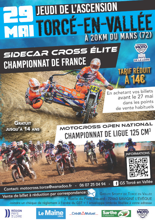 * Reportage en images : * Devant les 5000 spectateurs enflammés le duel entre l'équipage des frères Prunier et celui formé par Marvin Vanluchène et Nicolas Musset a bien eu lieu, chacun a remporté une course du championnat de France de sidecar cross. Les side-cars étaient une trentaine de compétiteurs, cinq nations au rendez-vous avec la France, la Belgique, les Pays-Bas, la Lettonie et l’Estonie. Les étrangers ont une licence française d’une journée. Le public pouvait admirer Marvin Vanluchen, champion du monde et son coéquipier, Nicolas Musset, licencié au GST mais aussi Kilian Prunier, prétendant au titre 2025. En motocross, Cyril Genot, deux fois sur le podium de l’Enduro du Touquet, une des plus grandes courses mondiales, était à Torcé-en-Vallée . Il y a quelques mois Christian Letessier, président du club, souhaitait "jeter l'éponge", fatigué par 27 ans de présidence et plus de 40 ans au club, malgré l'aide de son épouse Catherine, Trésorière de l'association. Mais la réussite de cette édition, avec la hausse de la fréquentation à l'évènement a boosté Christian, son épouse et les bénévoles, il faut noter que le club venait d’acquérir un terrain de 3,5 hectares près du circuit, avec un effort particulier pour embellir les abords du circuit. De gros moyens humains et financiers étaient mobilisés, un moyen avait été étudié pour lutter contre la pluie, mais malheureusement l'organisateur n'avait pas prévu une cyber attaque sur son ordinateur. Interview du président Christian Letessier :